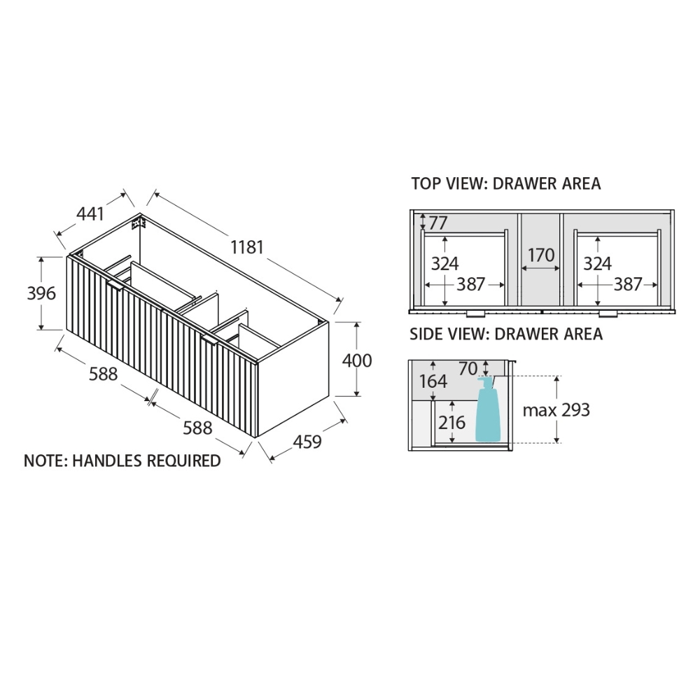 - Full depth (suits 465 mm tops)