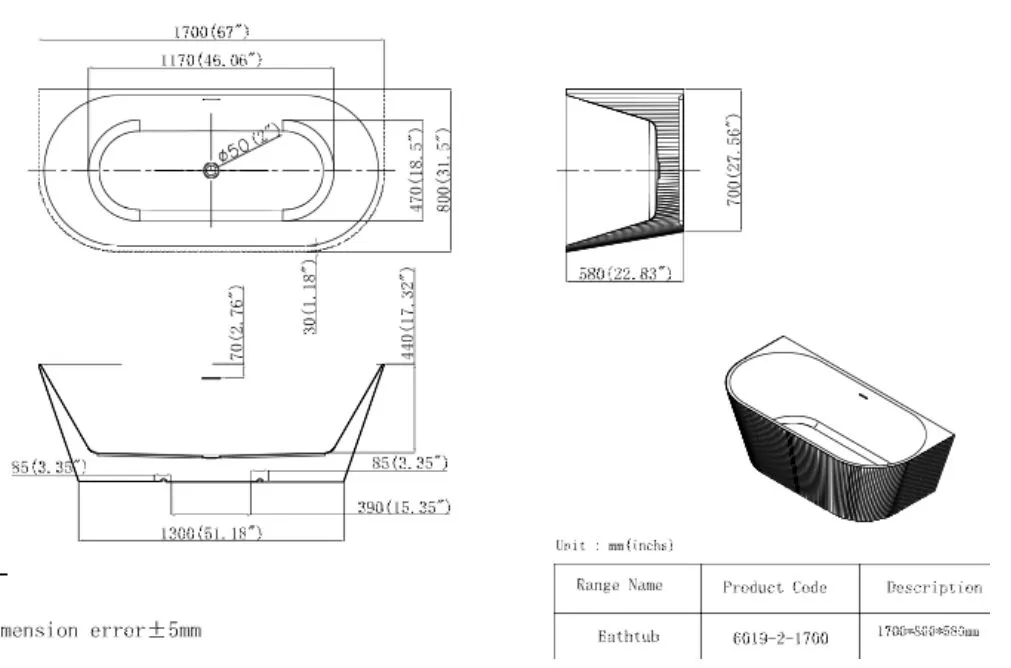 Dimensions: 1700mm x 750mm x 720mm