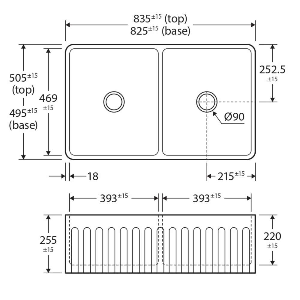 - Fluted or flat front surface (reversible)