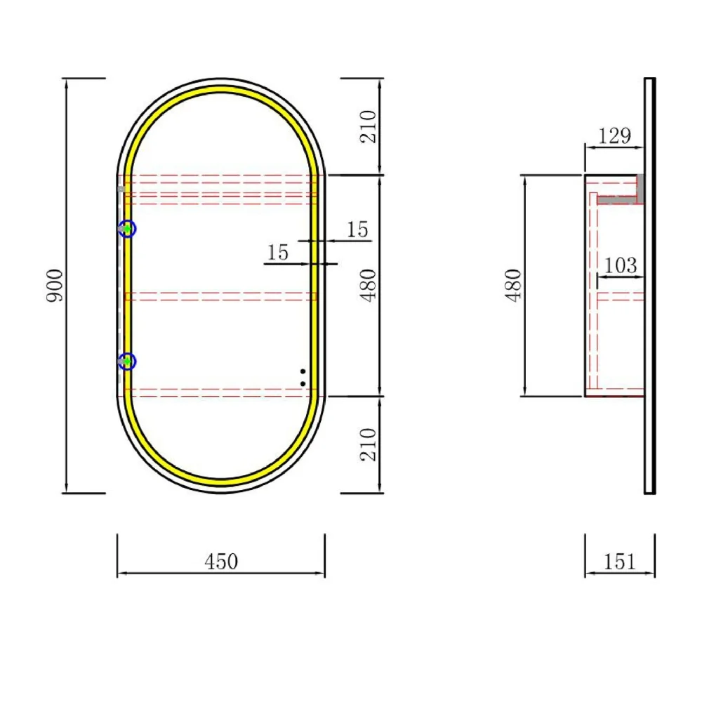 • Dimension: 450x900x151mm
