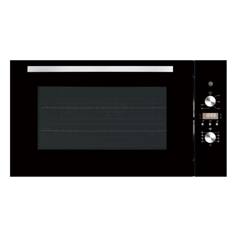 Make the most of the extra width with the Di Lusso 90cm oven in a sleek black design with easy glide telescopic rails and multi-cooking functions. Cook for a crowd with ease in the large 100L oven.