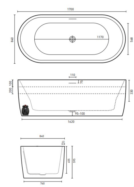 1700 x 840 x 595 (mm) – 195L