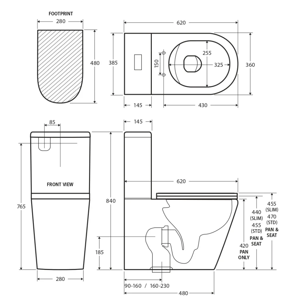 - UF quick release, soft close seat
