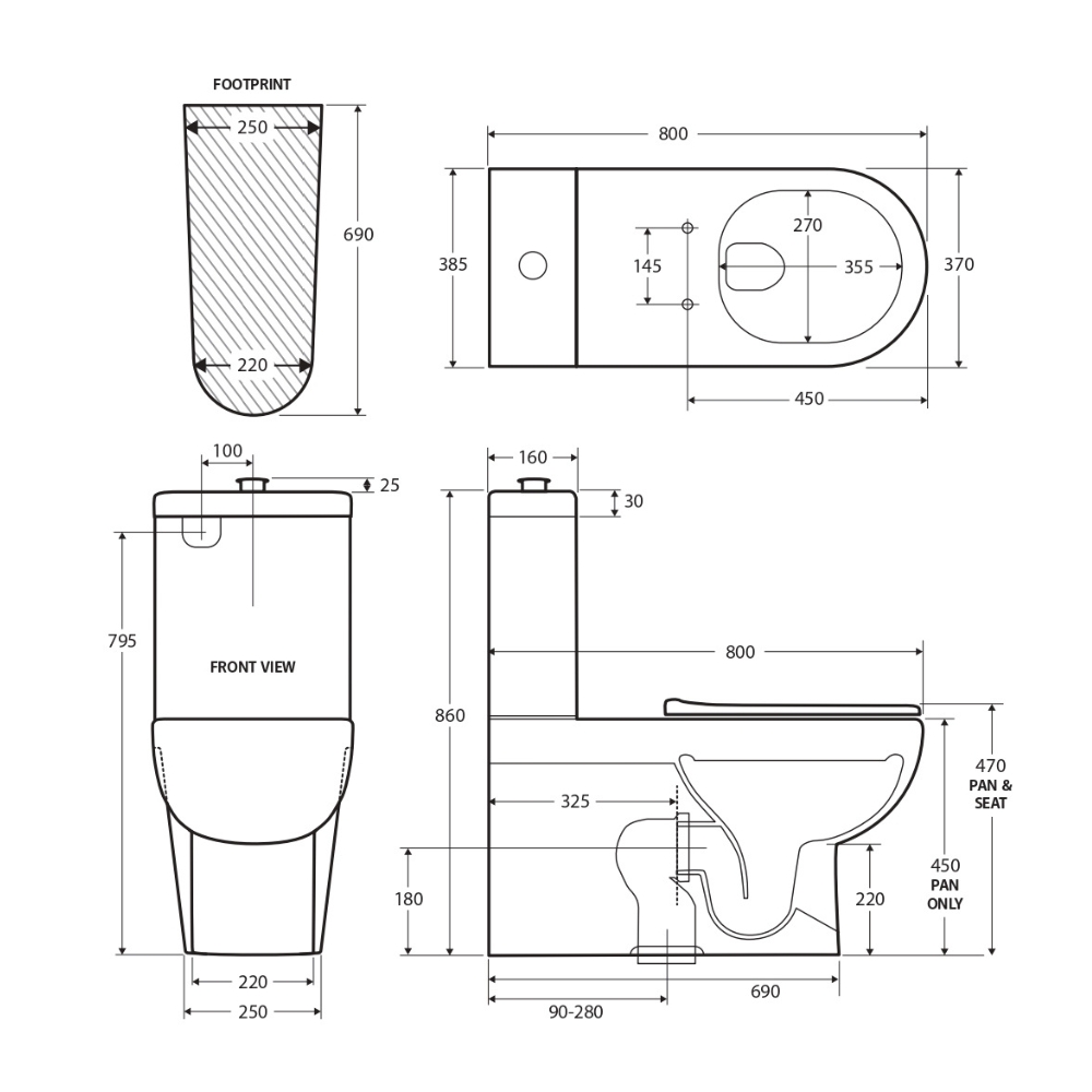 • Gloss white finish on pan and cistern