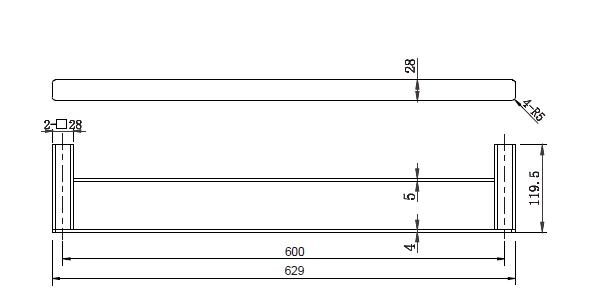 Chrome Noble Double Towel Rail 600mm, Matte Black Noble Double Towel Rail 600mm