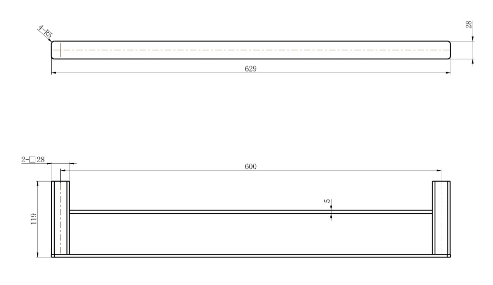 Nova Double Towel Rail 600mm NVA48BM – Brushed Bronze