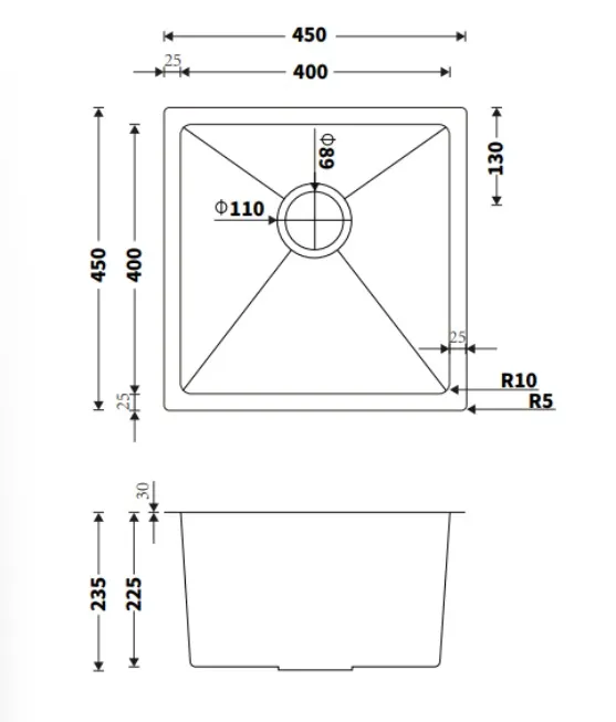 Version: 450 Kitchen Sink Round Corner Stainless Steel Single Bowl PPS-450