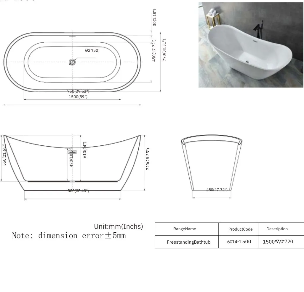 Version: Ruve Free Standing Bathtub – PPS-RB-1500