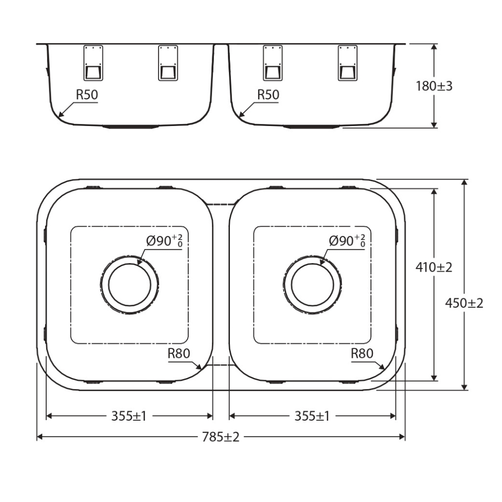 - Double bowl design