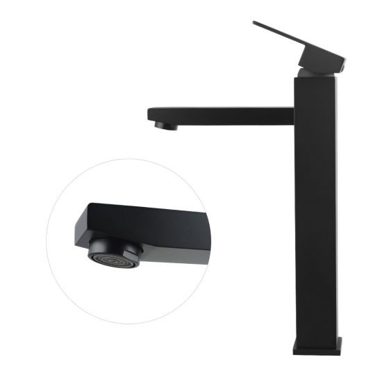 Chrome Vallo Square Tall Basin Mixer, Matte Black Vallo Square Tall Basin Mixer