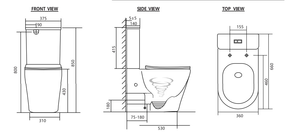 - P-trap:180mm Roughing-In